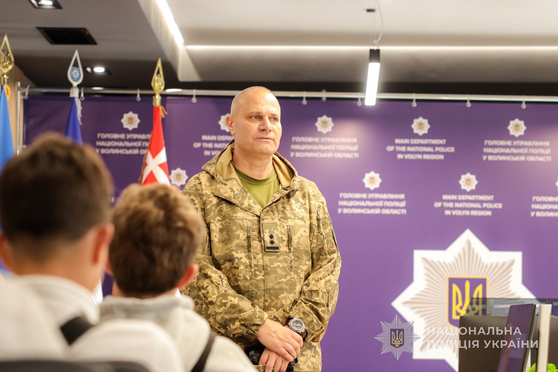 Офіцер ЗСУ та нині радник начальника ГУНП з питань ветеранської політики Ігор Дрючан наголосив школярам, що війна розпочалася у 2014. Він пригадав ті події та поділився власними спогадами, зокрема, про складні сторінки в історії - Іловайський котел й Дебальцеве. Тож закликав памʼятати тих, хто ціною власного життя захищав та захищає нас нині. Також поділився секретами роботи в розвідці однієї з бригад.