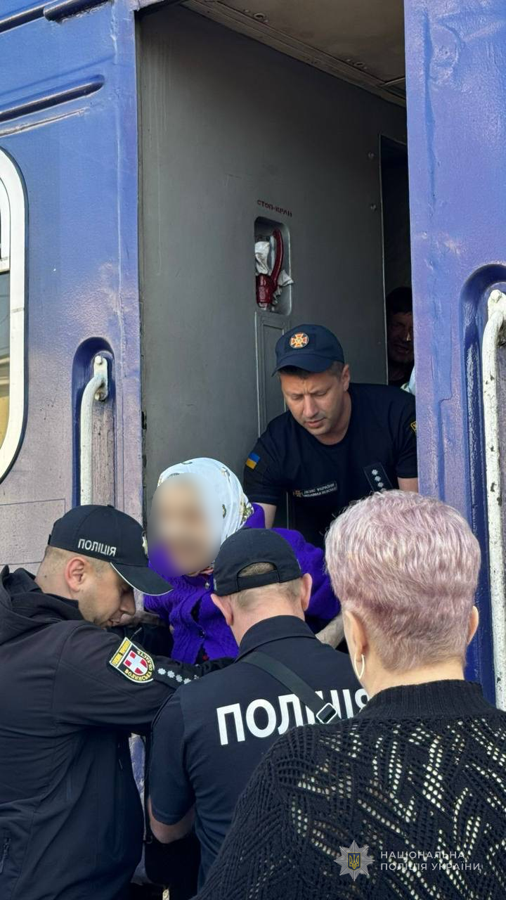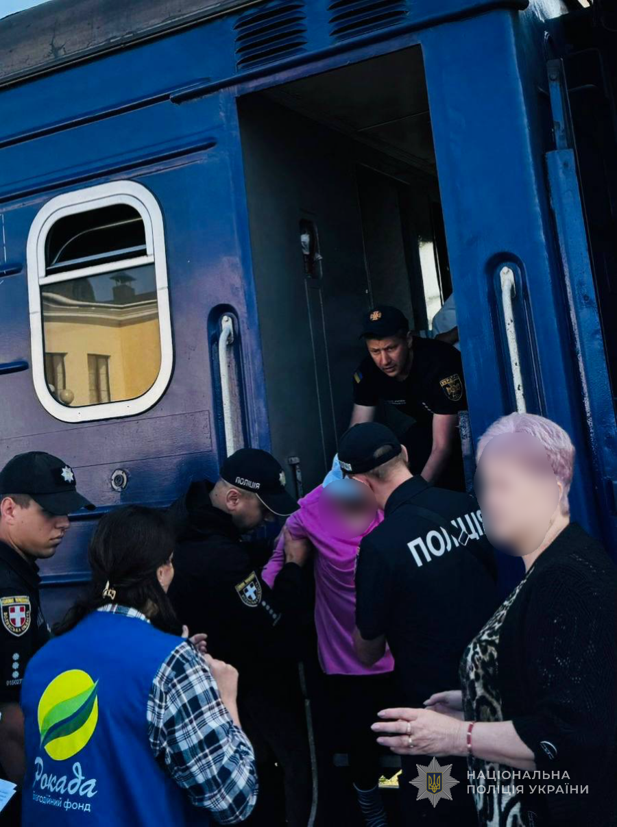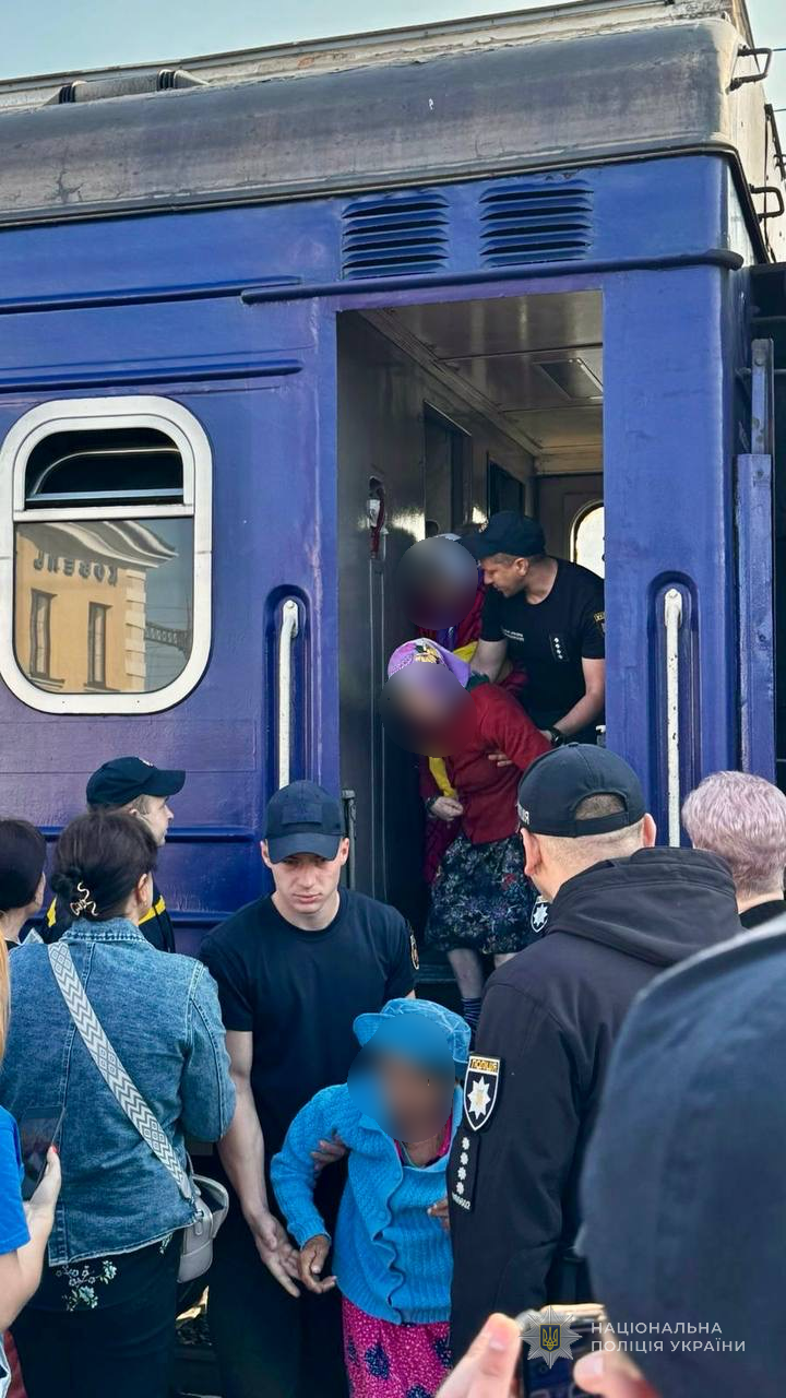 Сьогодні правоохоронці забезпечили охорону громадського порядку під час зустрічі потяга, яким прибули евакуйовані жінки з одного з психоневрологічних інтернатів на Сумщині.