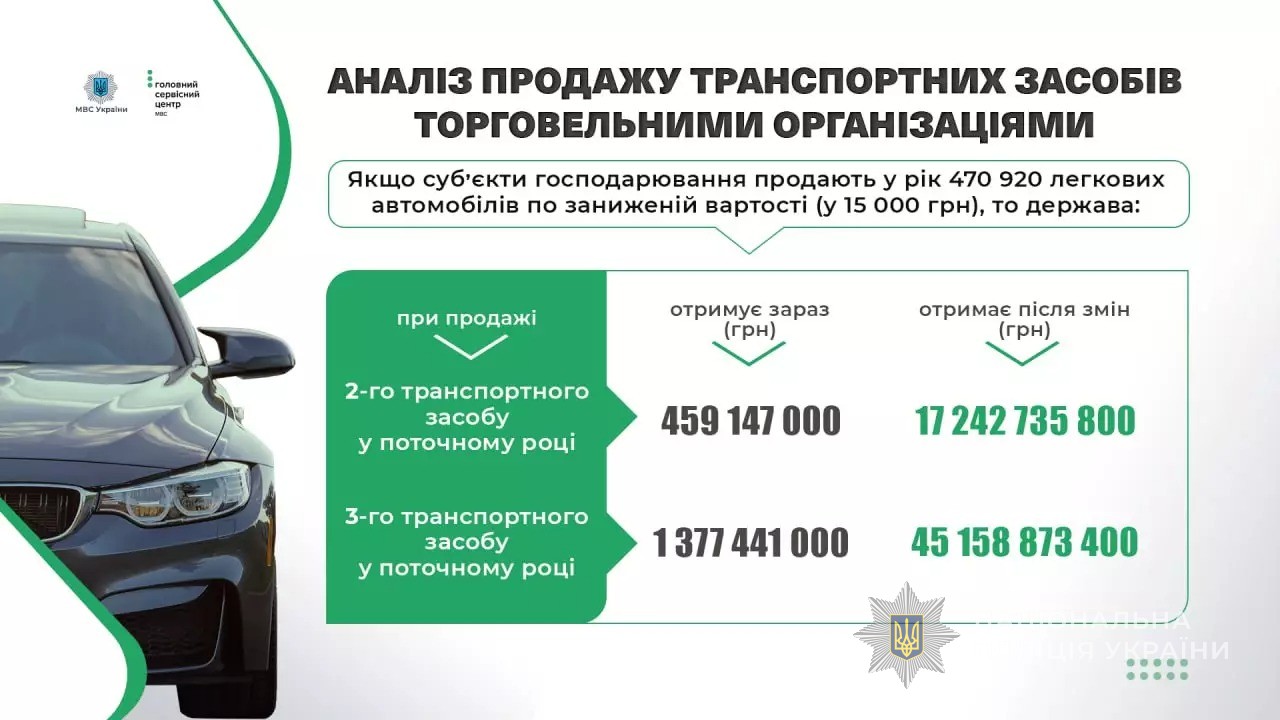 Нова автівка преміумкласу за 10 тисяч гривень – це реальність! На жаль… лише на папері. Через дії продавців, які під час продажу навмисне у десятки разів занижують оціночну вартість транспортного засобу, бюджет України недоотримує мільйони гривень. Завдяки ініціативі МВС України та рішенню Кабінету Міністрів України цю проблему буде вирішено.