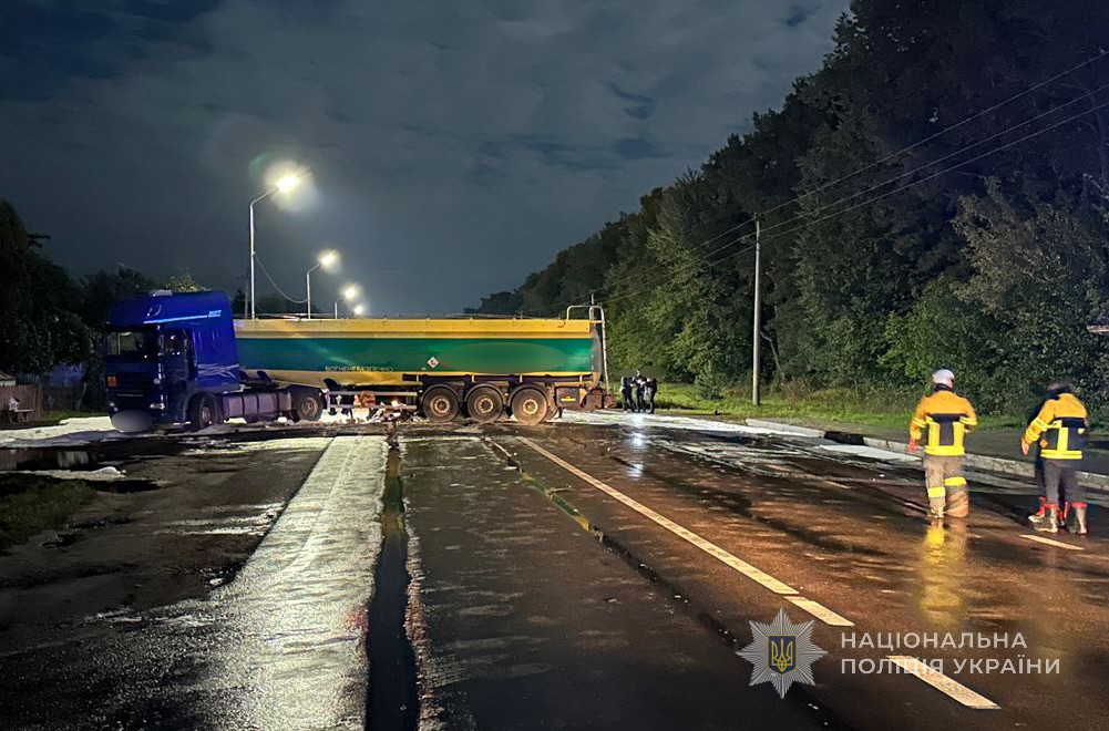 Внаслідок автопригоди водій легковика отримав тілесні ушкодження, не госпіталізувався. Також пошкоджено одну секцію цистерни з бензином, стався витік пального. На місці працювали рятувальники, які вжили усіх необхідних заходів для запобігання займання.