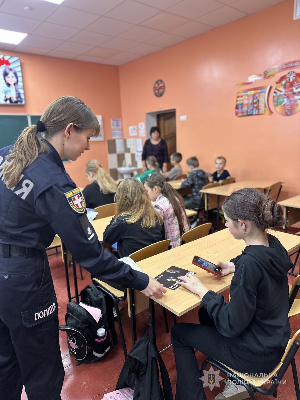 Крім того, поліцейські приділили увагу питанням безпечного працевлаштування та подорожей за кордон. Учні активно долучалися до обговорення, ставили запитання та ділилися власними міркуваннями щодо можливих ризиків і шляхів їх уникнення.